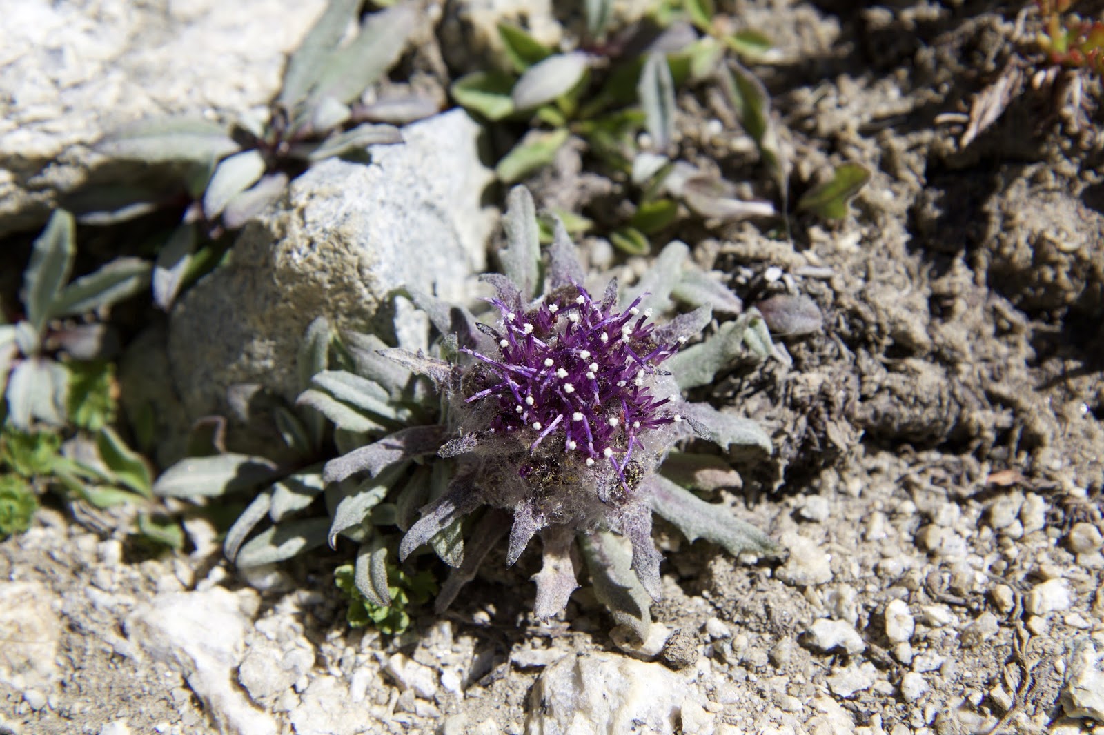 Dramatic black and white of the glacier. A few lovely flowers growing at the top. More flowers growing under the glacier.